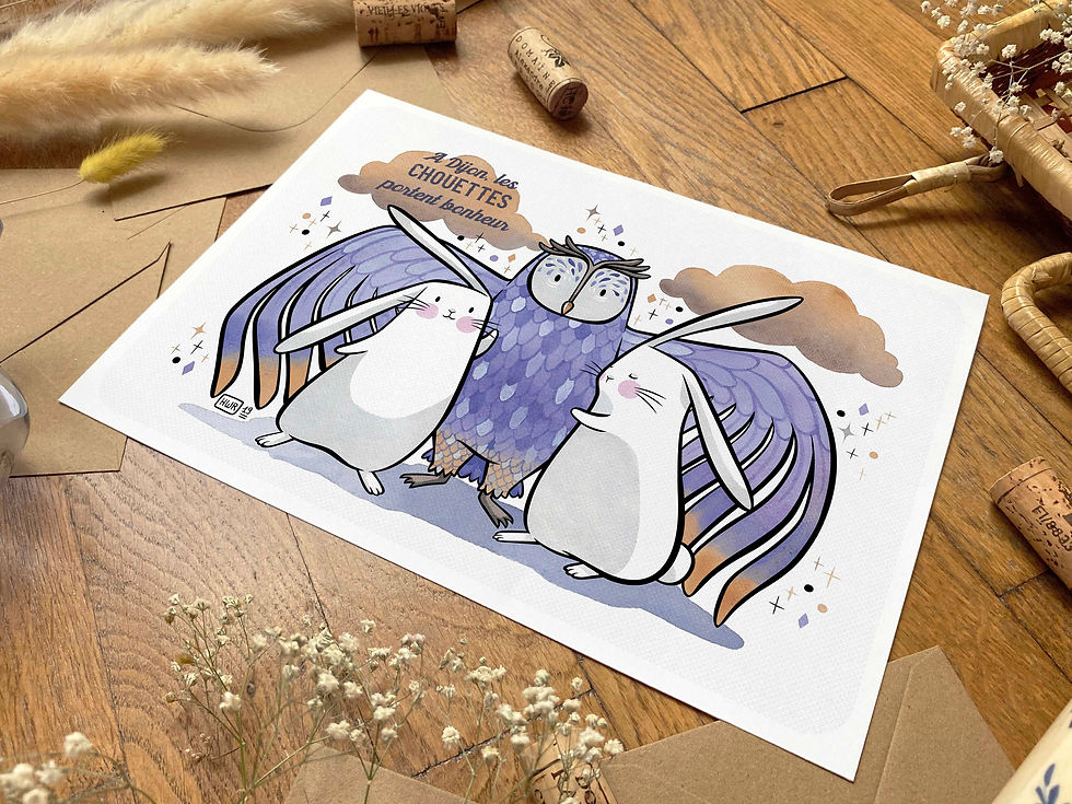 Installée aujourd'hui à côté de Dijon (cette ville que j'adore !) je travaille en freelance depuis 2014, comme illustratrice et graphiste.